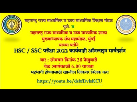 महाराष्ट्र राज्य माध्यमिक व उच्च माध्यमिक शिक्षण मंडळ पुणे व महाराष्ट्र राज्य माध्यमिक व उच्च माध्यमिक शाळा मुख्याध्यापक संघ महामंडळ मुंबई यांच्या वतीने 10 वी व 12 वी परीक्षा 2022 च्या संचालन व कार्यवाही बाबत ऑनलाइन मार्गदर्शन कार्यशाळा.